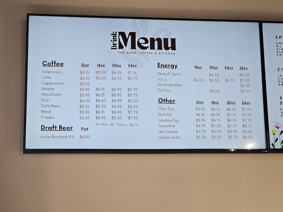 Step into the world of The Burg Coffee & Kitchen Menu, where every choice feels like a little adventure. From hearty breakfast options to satisfy-your-craving lunches, this place has a knack for blending comfort with creativity. Imagine starting your morning with a perfectly brewed coffee, paired with a flaky pastry or a loaded breakfast sandwich that hits all the right notes. As the day moves on, the menu shifts seamlessly into fresh salads, savory burgers, and hand-crafted sandwiches, each offering bold flavors without feeling overdone.